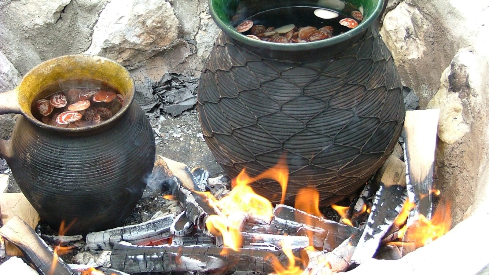 Die Geschichte des Gerichts stammt aus jener Zeit, als die Bauern den ganzen Tag auf die Felder arbeiteten. Als Mittagessen brachten sie einen Keramikkrug mit, in dem die Zutaten für ihr Mittagessen schon vorbereitet waren: Fleisch, Gemüse und Bohnen. Als sie anfingen zu arbeiten, gossen sie Wasser auf die Zutaten und lassten sie neben dem Feuer im Krug einige Stunden lang selber kochen – gerade fertig für die Mittagspause!